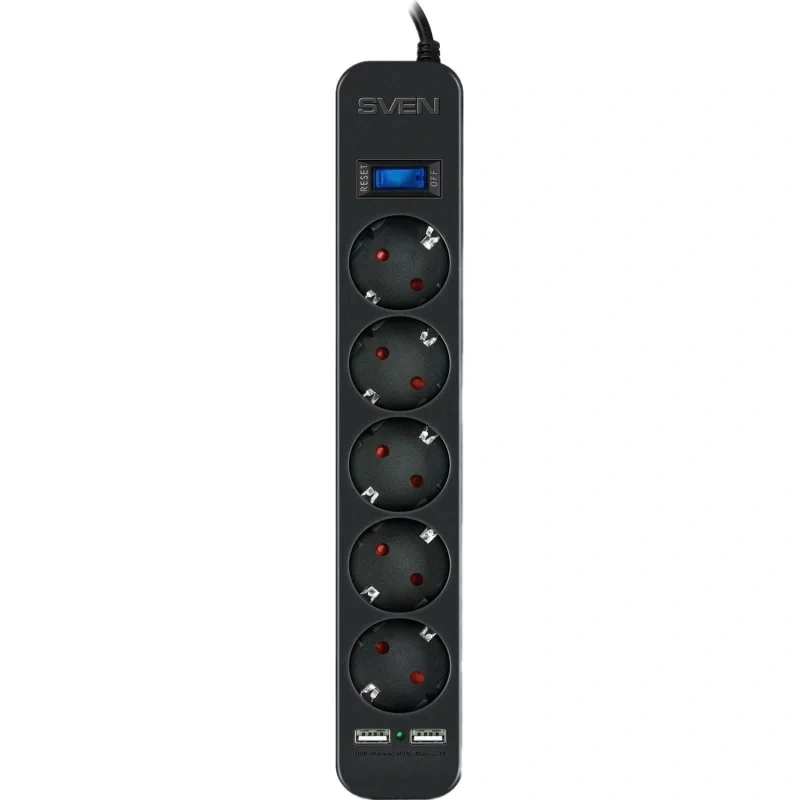 Сетевой фильтр SVEN SF-05LU 1,8 м (1,8м/5р,2xUSB(2.4А)) черный(SV-018832)