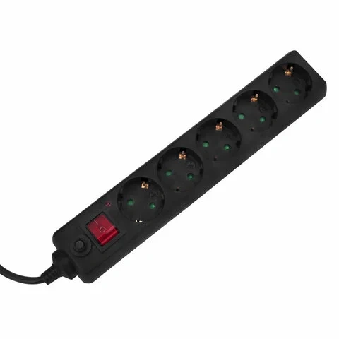 Сетевой фильтр SONNEN U-3515, 5 розеток, с заземлением, выключатель, 10 А, 5 м, черный, 513490