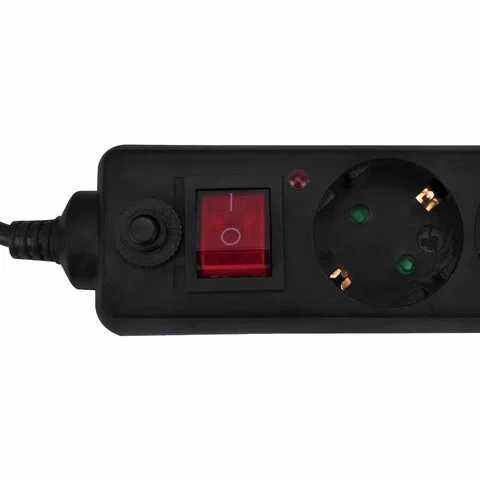 Сетевой фильтр SONNEN U-3513, 5 розеток, с заземлением, выключатель, 10 А, 3 м, черный, 513489