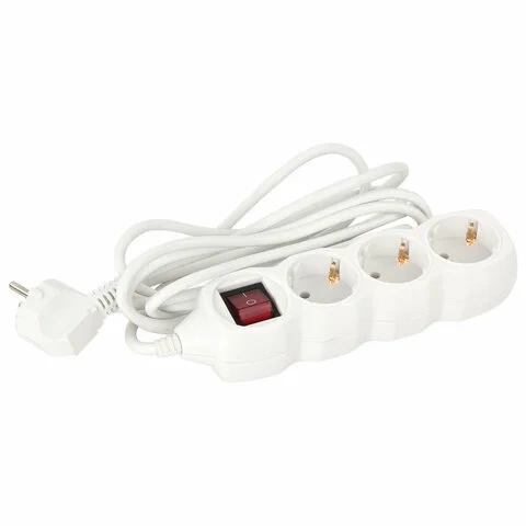 Удлинитель электрический Sonnen PSW-503 3 розетки, 5м, белый, выключатель 10 А