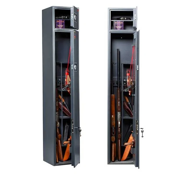 толщина металла корпуса и двери – 2 мм оборудованы патронным отделением, запирающимся на ключ, и ложементами для ружей