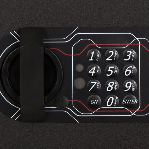На сейф установлен электронный кодовый замок PLS-3 (Россия) со световой и звуковой индикацией, позволяющий запрограммировать свой уникальный код (от 4 до 8 знаков). В комплект входит аварийный мастер-ключ, на случай, если забыли код или вышли из строя элементы питания. Подробная инструкция по эксплуатации замка в комплекте.