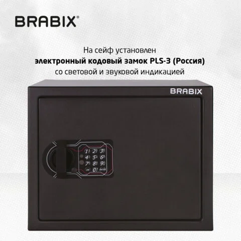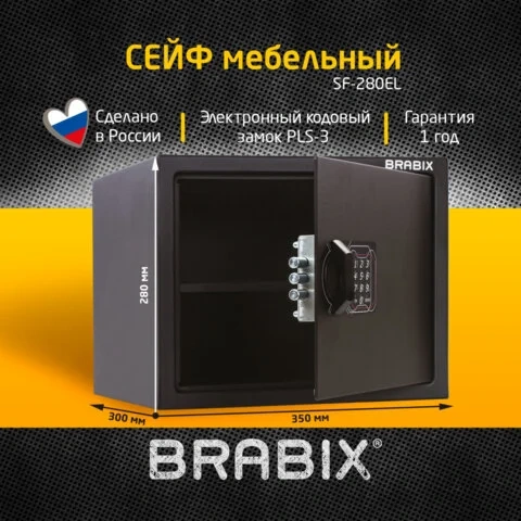 Сейф мебельный BRABIX 'SF-280EL', 280х350х300 мм, электронный замок, черный, 291149, S103BR212414
