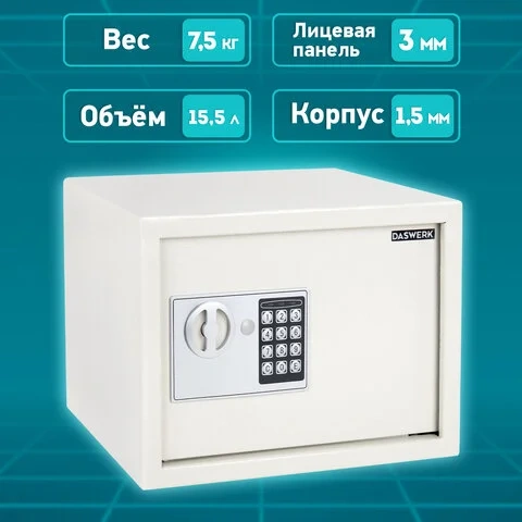 Сейф мебельный DASWERK SC-250EL (250х350х250 мм), электронный замок, бежевый, 291345
