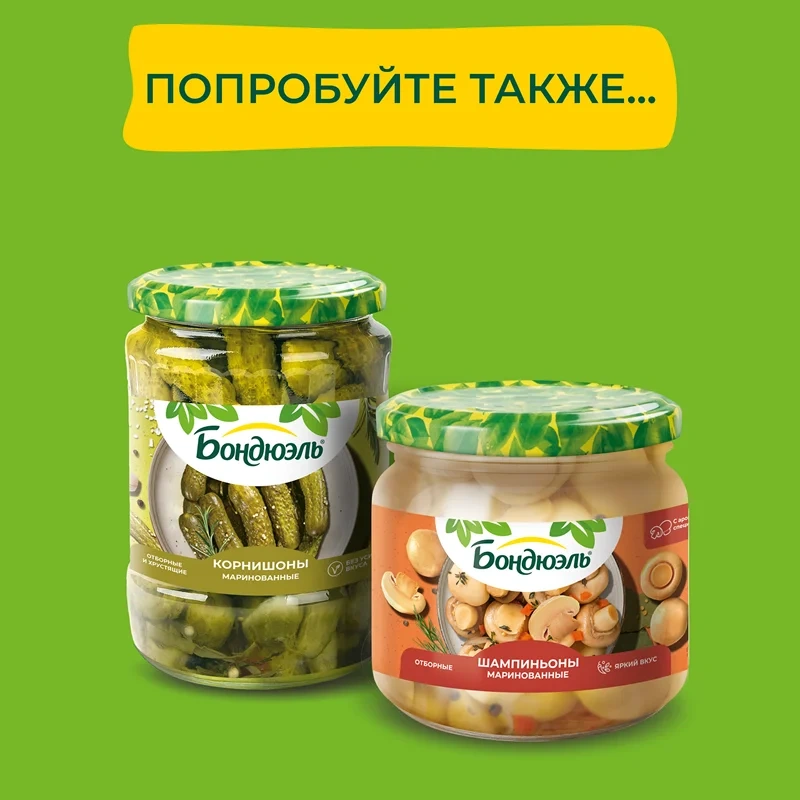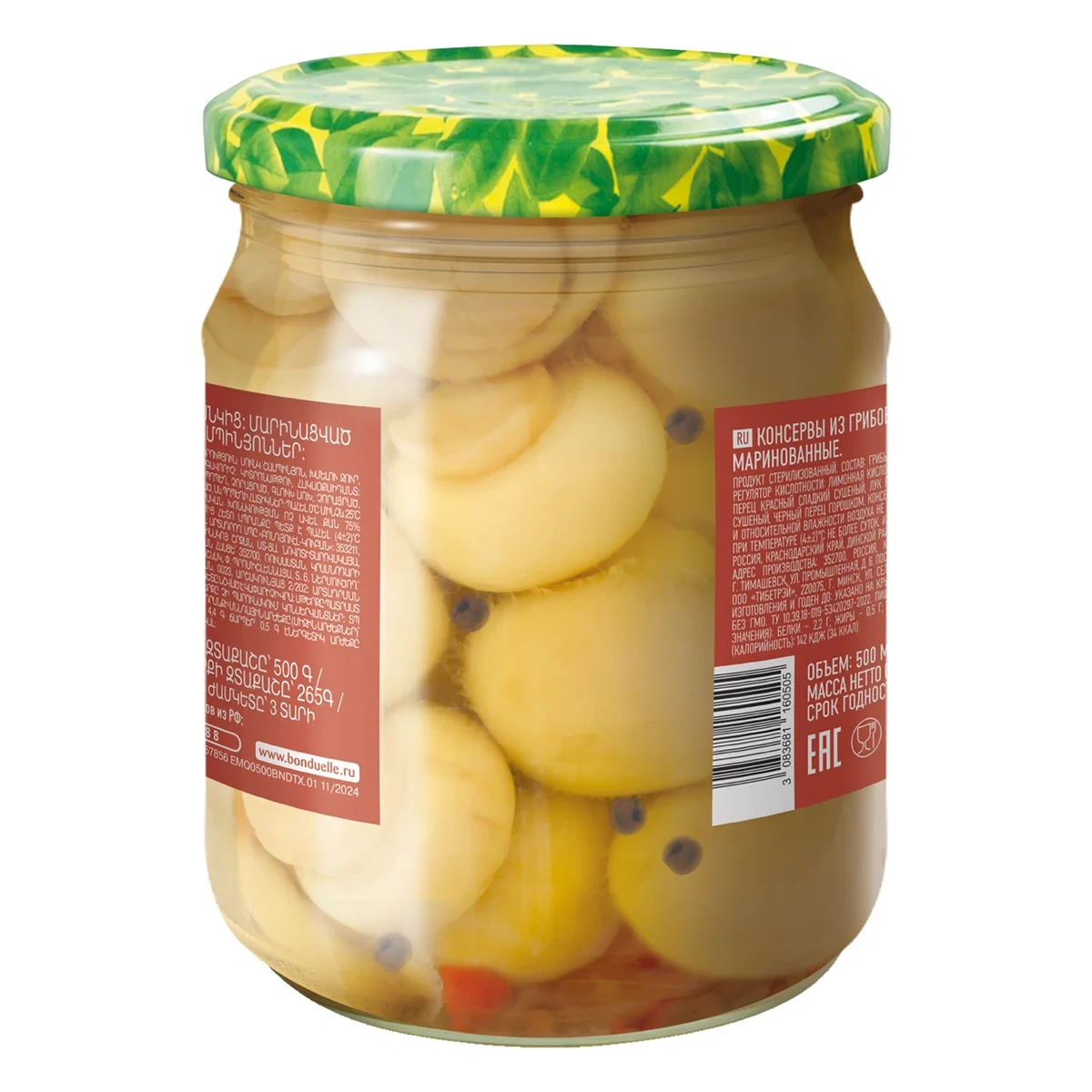 Это целые аппетитные грибочки, законсервированные в пряном кисло-сладком маринаде с красным болгарским перчиком, зернами горчицы и душистым укропом. Ровные, аккуратные, хрустящие, они станут украшением закусочной части вашего застолья. Подайте их в качестве закуски к крепким напиткам, используйте для приготовления аппетитных канапе, пикантных вегетарианских салатов, овощных запеканок и супов. Продукт упакован в стеклянную банку с герметичной крышкой.