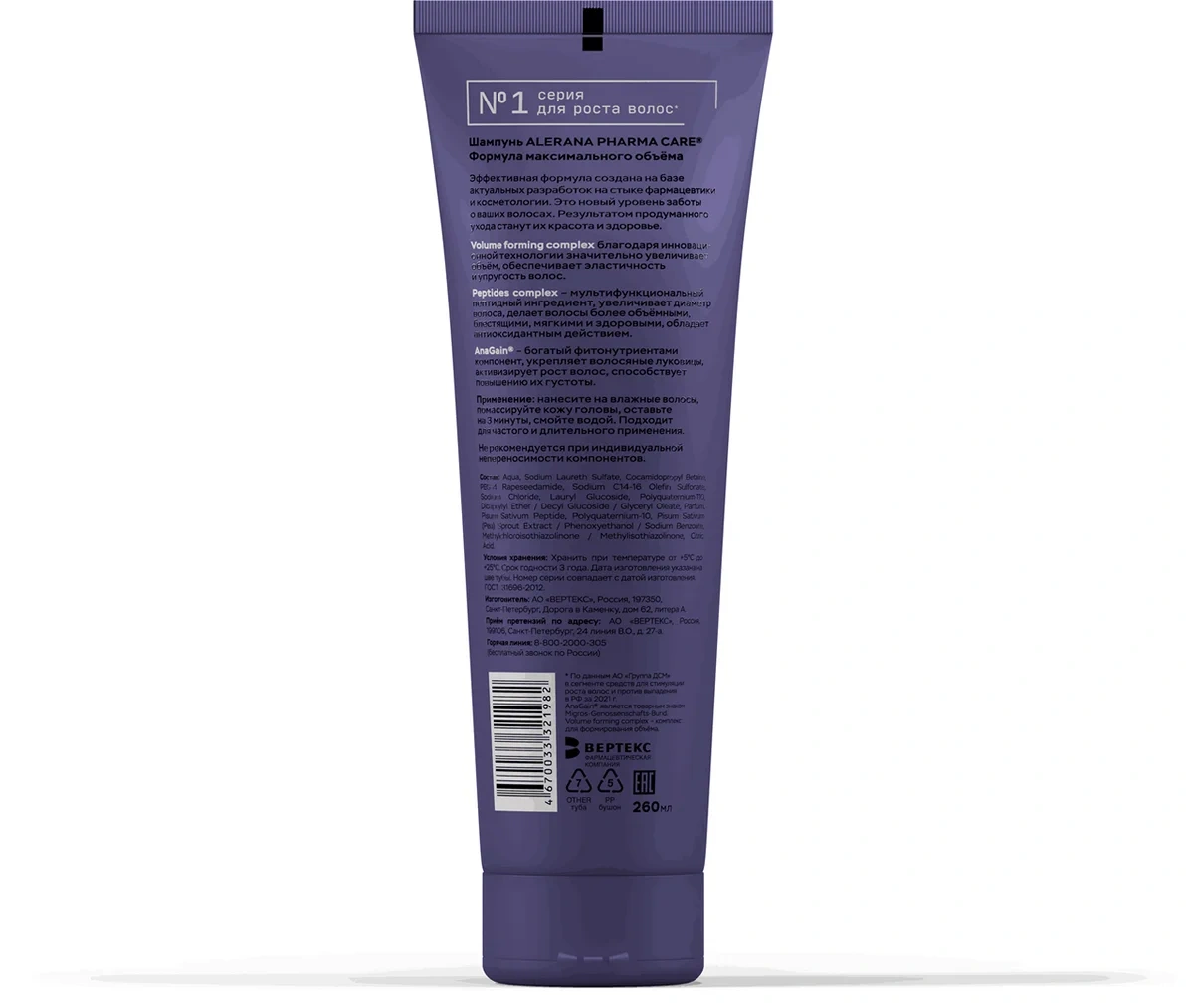 Шампунь Alerana Pharma Care формула максимального объема, 260мл