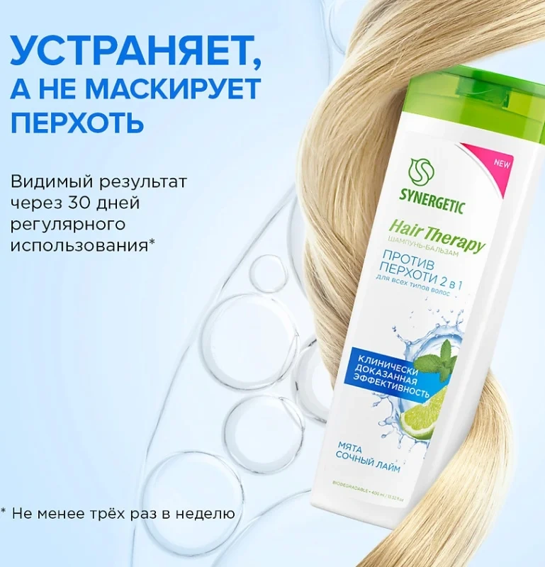 Шампунь-бальзам Synergetic Hair Therapy Против перхоти 2 в 1, 400мл