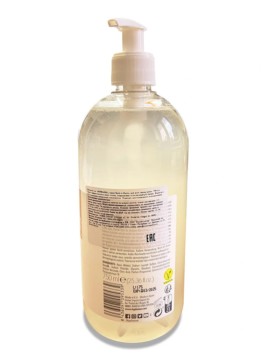 Шампунь Byphasse Back to Basics для всех типов волос, 750мл