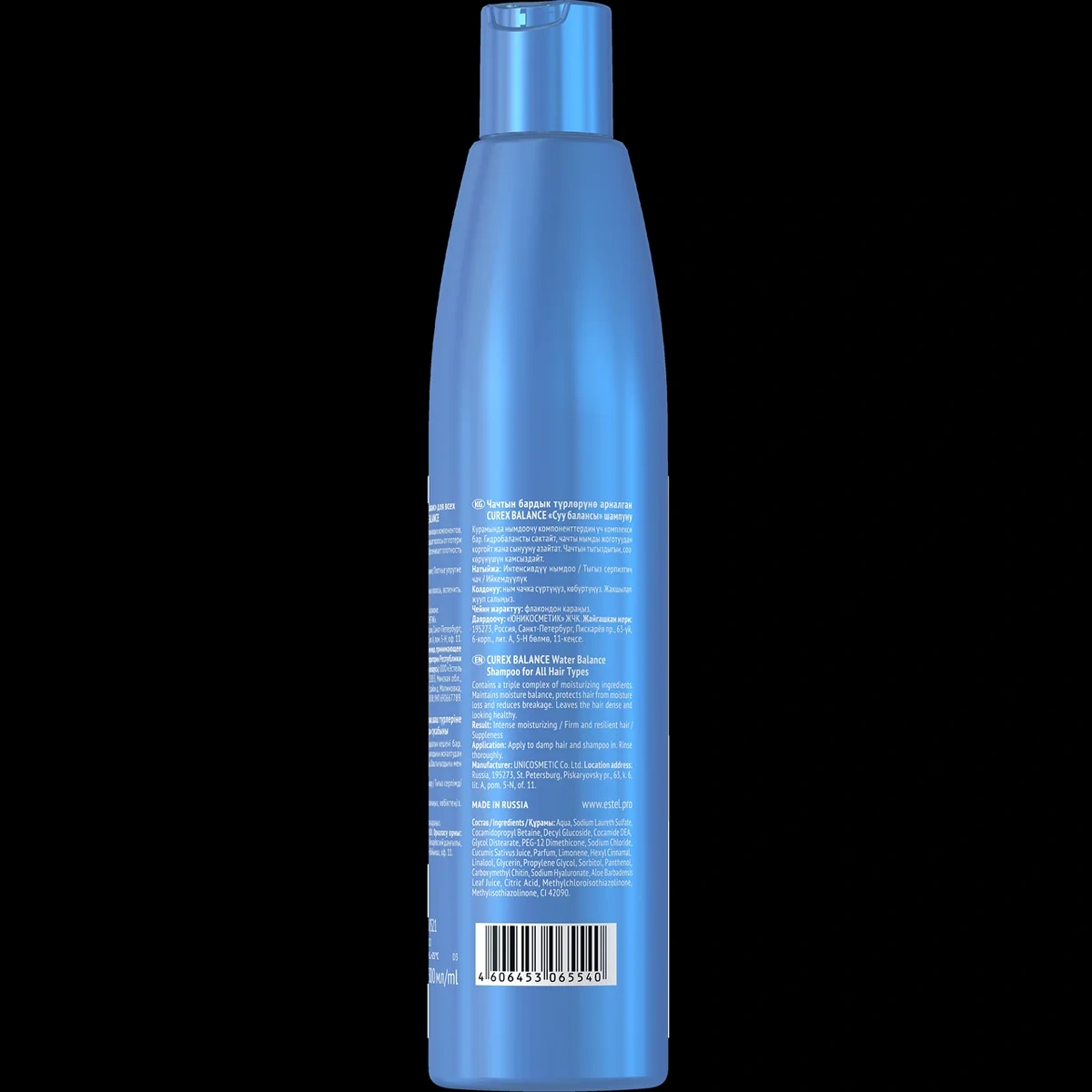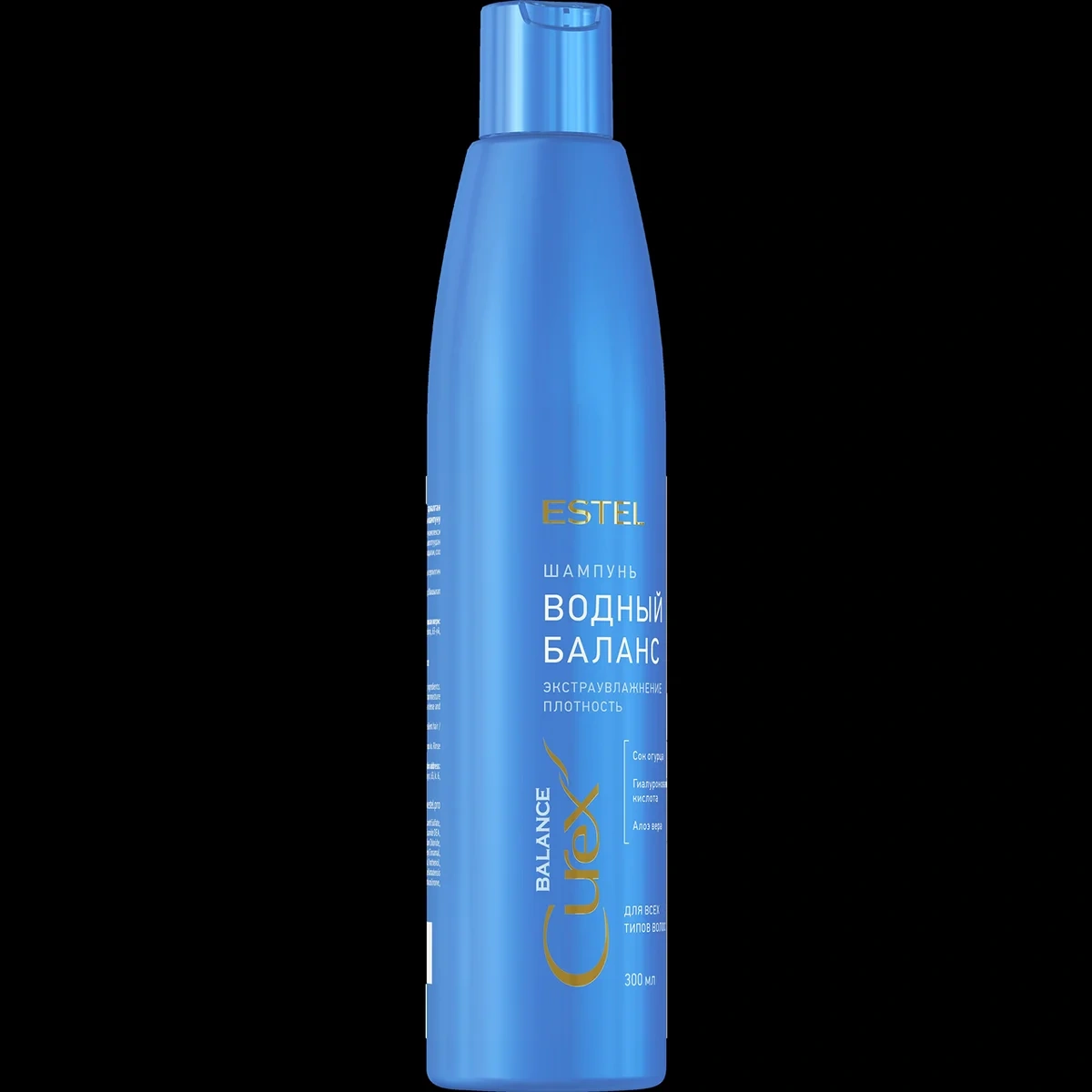 Содержит тройной комплекс увлажняющих компонентов: гиалуроновую кислоту, сок огурца и алоэ вера. Поддерживает гидробаланс, уменьшает ломкость, обеспечивает плотность и эластичность волос. Шампунь подходит поврежденным и обезвоженным волосам. Имеет гелеобразную структуру, перламутровый оттенок и приятную отдушку. Рекомендуется использовать в комплексе с бальзамом Curex Balance.