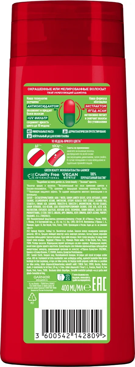 Шампунь Garnier Fructis Годжи Стойкий цвет для окрашенных или мелированных волос укрепляющий, 400мл