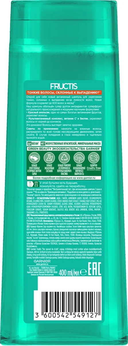 Шампунь Garnier Fructis Укрепляющий Рост во всю силу, 400мл