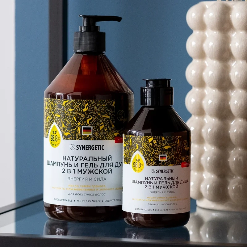 Шампунь Synergetic Энергия и сила 2В1, гуль для душа, 750мл