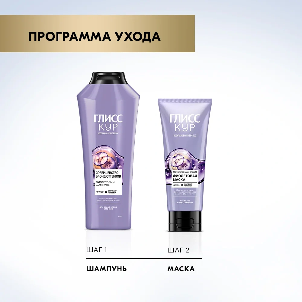 Осветленные волосы становятся ломкими, а блонд оттенок вымывается или желтеет? Волосы блонд оттенков нуждаются в особом уходе, который одновременно восстанавливает структуру волос и оживляет цвет. Глисс кур совершенство блонд оттенков обеспечивает: бережное очищение волос; глубокое восстановление; нейтрализацию желтизны. Продукт содержит 90% ингредиентов натурального происхождения (включая воду).