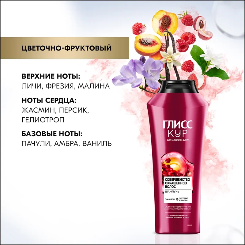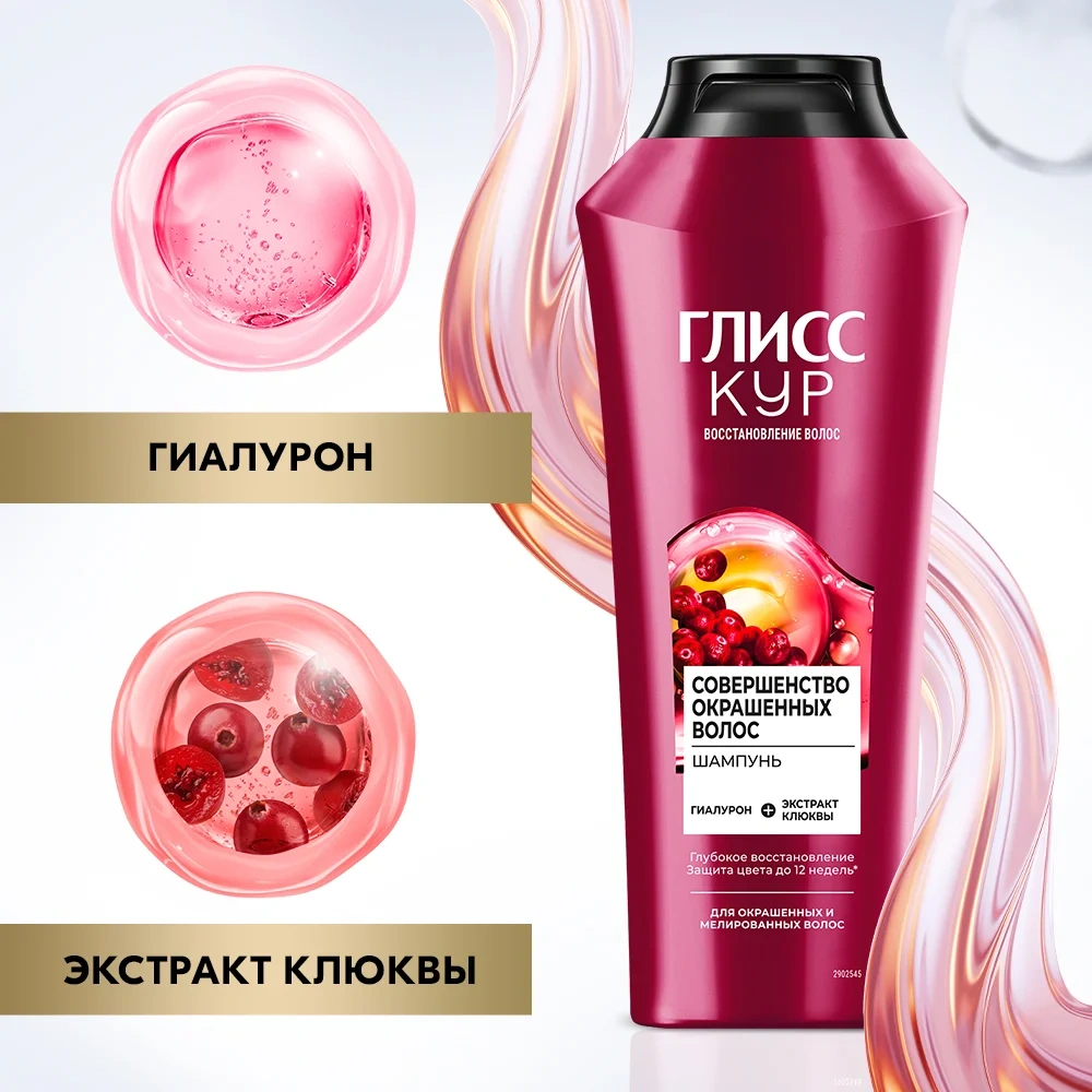 Вам кажется, что окрашивание влияет на качество волос, а цвет быстро вымывается и теряет яркость? Окрашенные волосы нуждаются в особом уходе, который одновременно восстанавливает волосы и сохраняет интенсивность цвета. Женский шампунь для волос Глисс Кур Совершенство окрашенных волос обеспечивает: глубокое восстановление и уход за волосами; защиту цвета от вымывания до 12 недель*; блеск. *при мытье головы 3 раза в неделю. Для лучшего эффекта рекомендуется использовать бальзам Глисс Кур Совершенство окрашенных волос. Продукт содержит 90% ингредиентов натурального происхождения (включая воду).