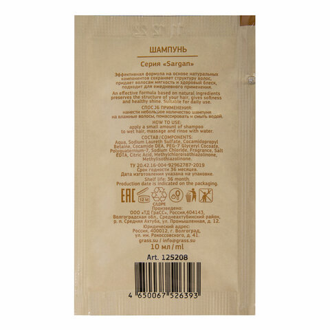 Шампунь Grass Sargan одноразовый, 10мл, саше, 500шт/уп