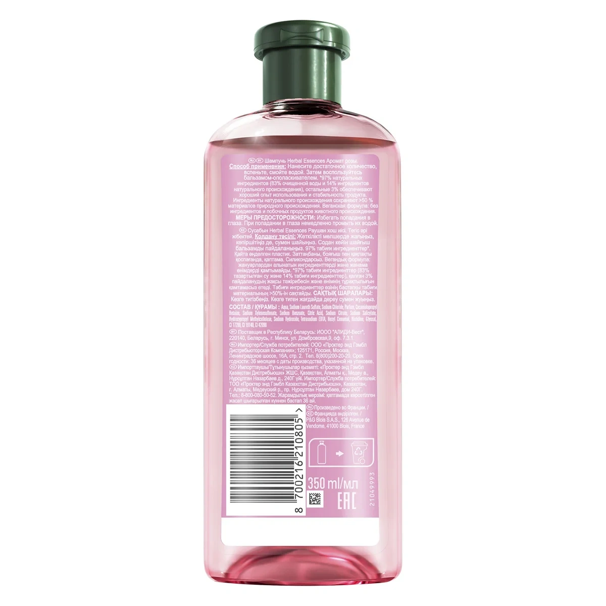 Насладитесь миром в розовых оттенках. Шампунь Herbal Essences Аромат розы Гладкие и Шелковистые улучшит состояние сухих волос, делая их мягкими и шелковистыми, а головокружительный аромат розы поднимет настроение и поможет достичь внутренней гармонии. Cмесь растительных питательных нутриентов и эликсир из роз, собранных вручную в парфюмерной столице Франции - Грас, подарят нежную пену волосам и сделают их невероятно мягкими как лепестки роз. Мы тщательно отбираем ингредиенты природного происхождения, чтобы привнести силу растений в вашу ванную комнату. Восстановите природную красоту волос и превратите уход за волосами в момент наслаждения вместе с коллекцией Аромат Розы Гладкие и Шелковистые. Веганская формула, не содержит силиконов.
