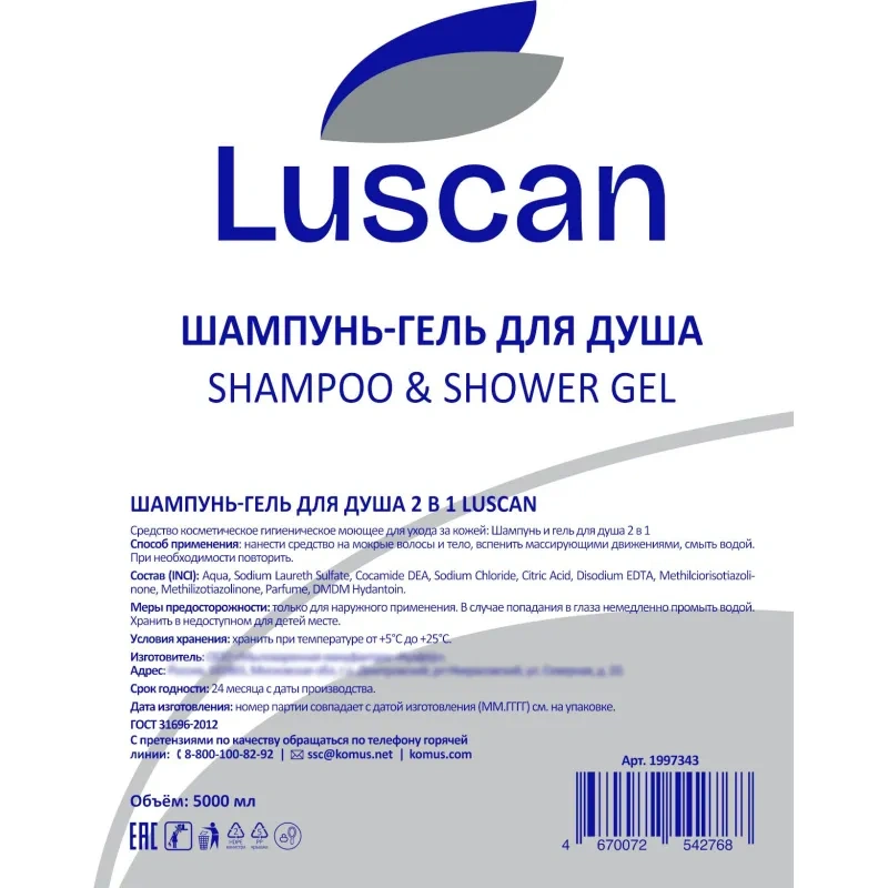 Шампунь и гель для душа Luscan 2в1, канистра 5000 мл