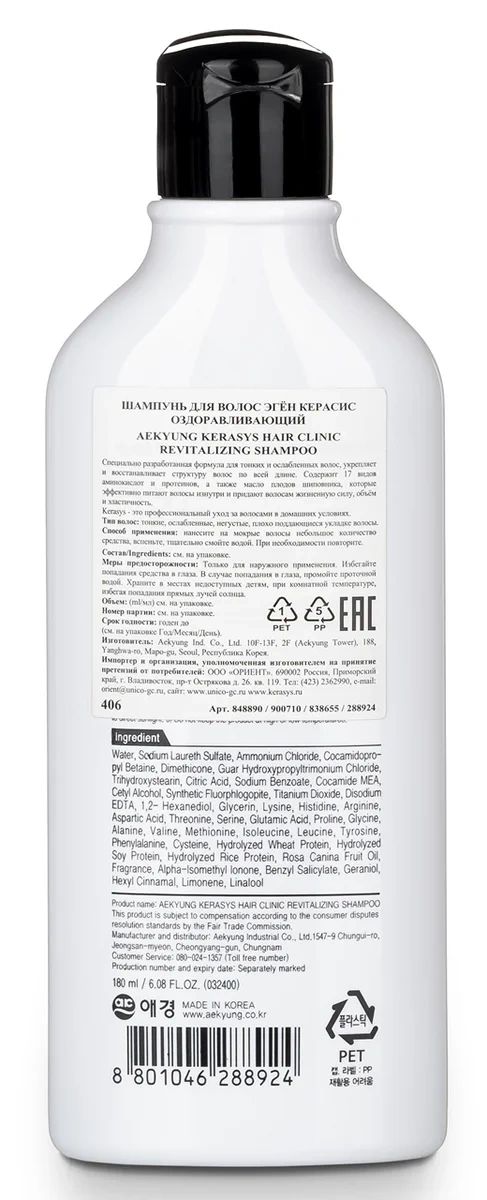 Профессиональная забота о тонких и поврежденных волосах, глубокое восстановление, бережное очищение и защита от агрессивного воздействия извне, питание обезвоженных прядей ? все это становится возможным с оздоравливающим шампунем для волос от южнокорейской фирмы Kerasys. Формула Hair Clinic Revitalizing Shampoo содержит:- протеин зародышей пшеницы - питает волосяные фолликулы и укрепляет луковицы, участвует в регенерации клеток кожи, лечит ослабленные волосы, делает их густыми;- витамин Е - выводит токсины, делает волосы блестящими и здоровыми за счет восстановления кератина, оказывает антиоксидантное воздействие. Шампунь бережно ухаживает за волосами и возвращает им сияние.