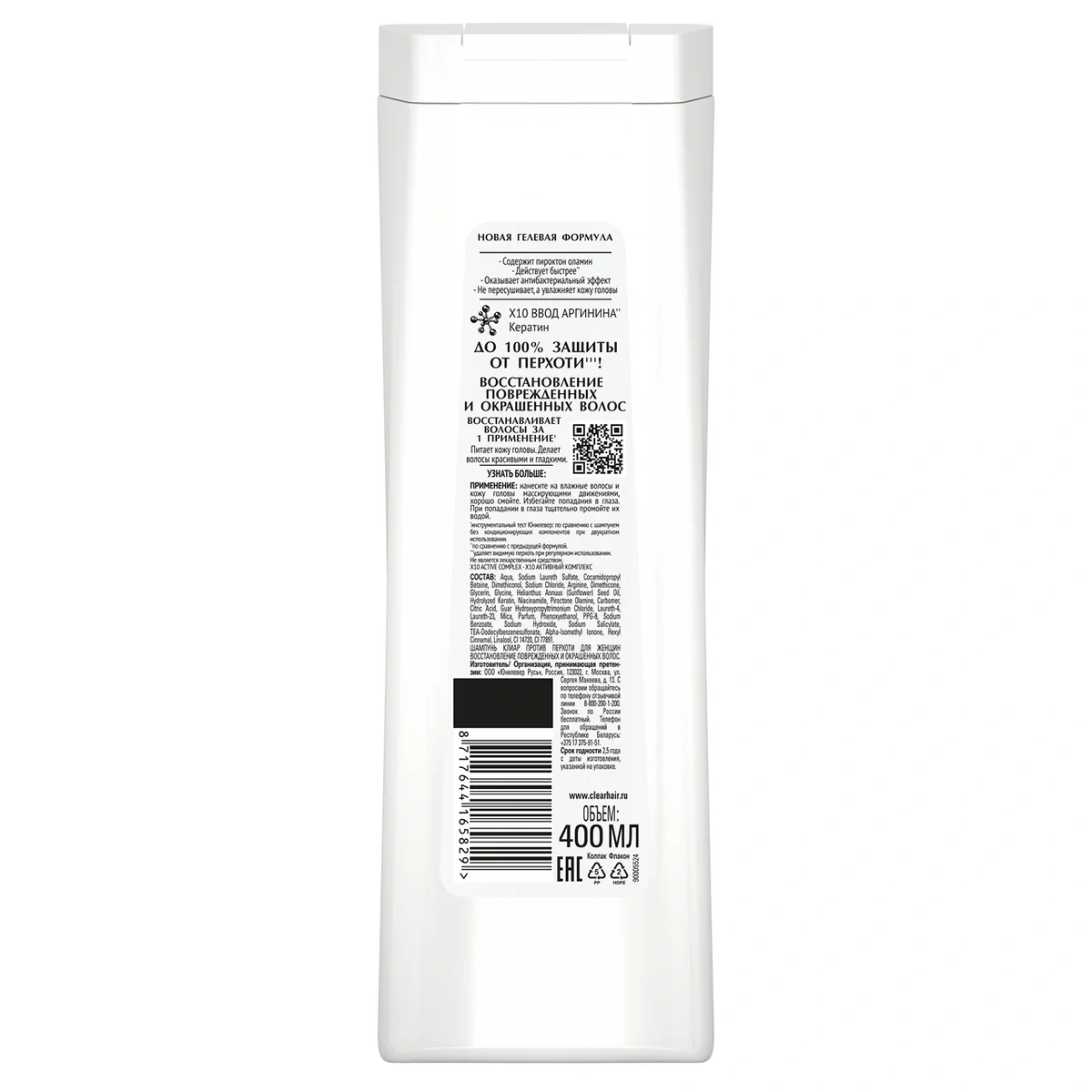 Шампунь Клиар Восстановление поврежденных и окрашенных волос против перхоти, 400мл