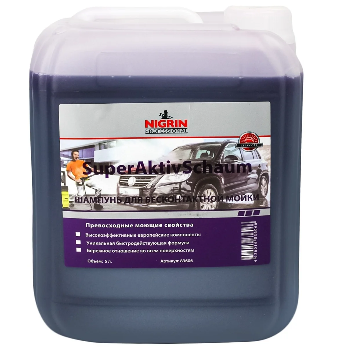 Шампунь Nigrin для бесконтактной мойки, 5 л – эффективное средство немецкого качества, которое идеально подходит для различных транспортных средств, в том числе и для грузовых. Относится к категории автошампуней со среднещелочным составом, содержит поверхностно-активные вещества. Образуемая стойкая пена безопасна для деталей автомобиля с хромированным покрытием, а также тех, что изготовлены из пластика и резины. Состав средства универсален, поэтому легко удаляет любые загрязнения без повреждения лакокрасочного покрытия. Подходит для очищения от пыли и грязи, убирает копоть и застаревший жир.
