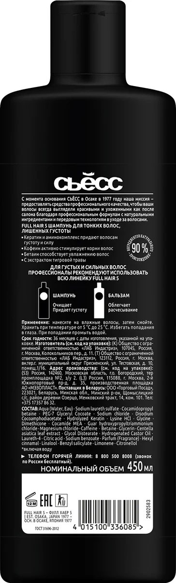 Шампунь Сьёсс Full Hair 5 для тонких волос лишенных густоты, 5-кратный эффект, 450мл