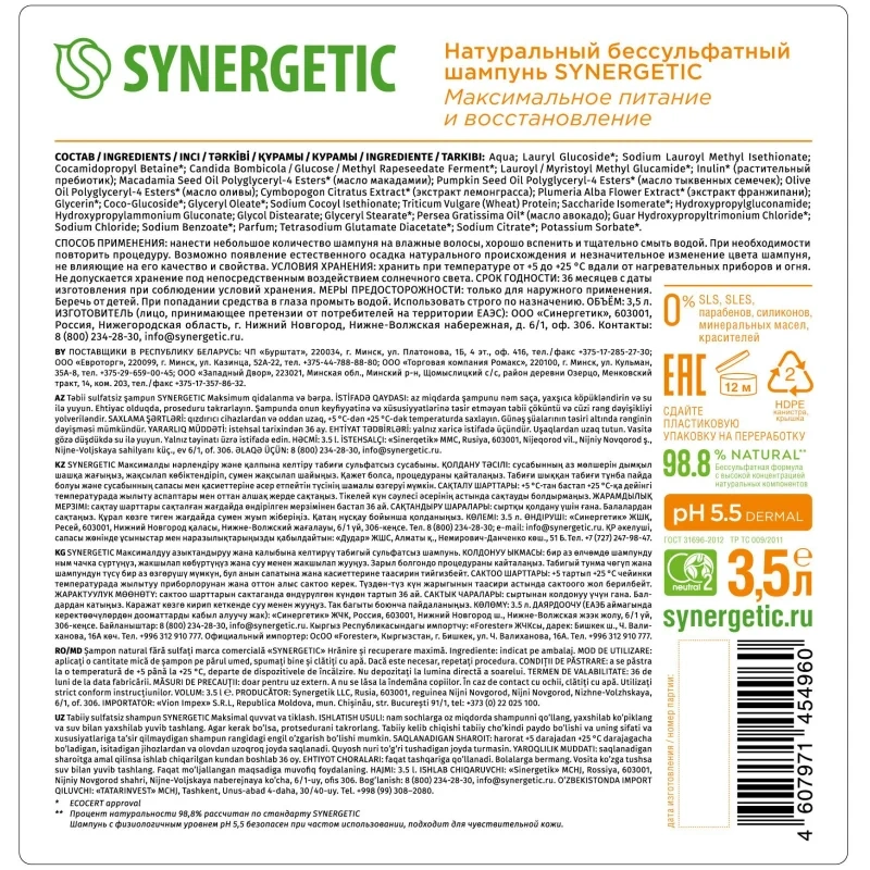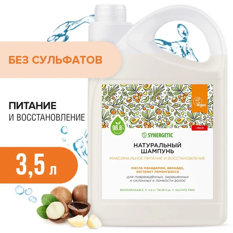 Шампунь Synergetic максимальное питание и восстановление, 3.5л