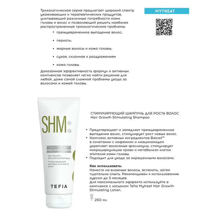Шампунь Tefia My Care стимулирующий для роста волос, 250мл