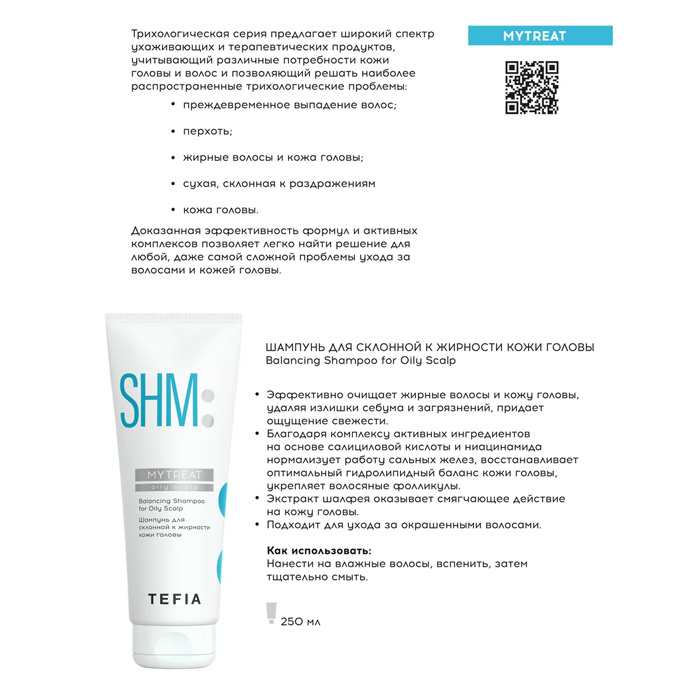 Шампунь Tefia My Treat для склонной к жирности кожи головы, 250мл