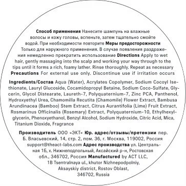 Освежающий шампунь Balance деликатно очищает волосы и кожу головы, удаляет остатки стайлинговых продуктов, отшелушивает и стимулирует микроциркуляцию. Эффективная формула с цинком, пантенолом, натуральными экстрактами лайма и бамбука нормализует выработку кожного сала, устраняет зуд и жжение, успокаивает кожу головы. создан для поддержания идеального баланса между эффективным уходом и заботой о здоровье волос и кожи головы. Продукт устраняет перхоть, отшелушивает ороговевшие клетки, улучшает микроциркуляцию и успокаивает кожу. Комплекс компонентов против перхоти устраняет шелушение и зуд, контролируя рост микроорганизмов, а также ухаживает за кожей головы, предотвращая сухость и раздражение. Биоминеральный комплекс с цинком регулирует выработку кожного сала, поддерживает здоровую микрофлору и обладает противовоспалительным действием, снижая раздражение и покраснение, стимулирует иммунные функции, помогая коже головы оставаться здоровой и защищённой. Поликватерниум 7 и 10 играют ключевую роль в улучшении расчесываемости и смягчении волос, делая их более послушными и гладкими как во влажном, так и в сухом состоянии. Экстракты ромашки, бамбука, лайма и розмарина успокаивают и увлажняют кожу, нормализуют секрецию, стимулируют рост волос и защищают от повреждений. Пантенол и глицерин обеспечивают длительное увлажнение, смягчают и защищают. Шампунь Balance не содержит сульфатов, парабенов и силиконов, а также подходит для всех типов волос: жирных, сухих, кудрявых и прямых, для окрашенных, а также для волос после процедур ботокса и кератина. Компоненты средства безопасны, подходят для чувствительной кожи и не вызывают аллергических реакций. Нанесите шампунь на влажные волосы и кожу головы, вспеньте, затем тщательно смойте водой. При необходимости повторите. Рекомендовано к применению с 14 лет.
