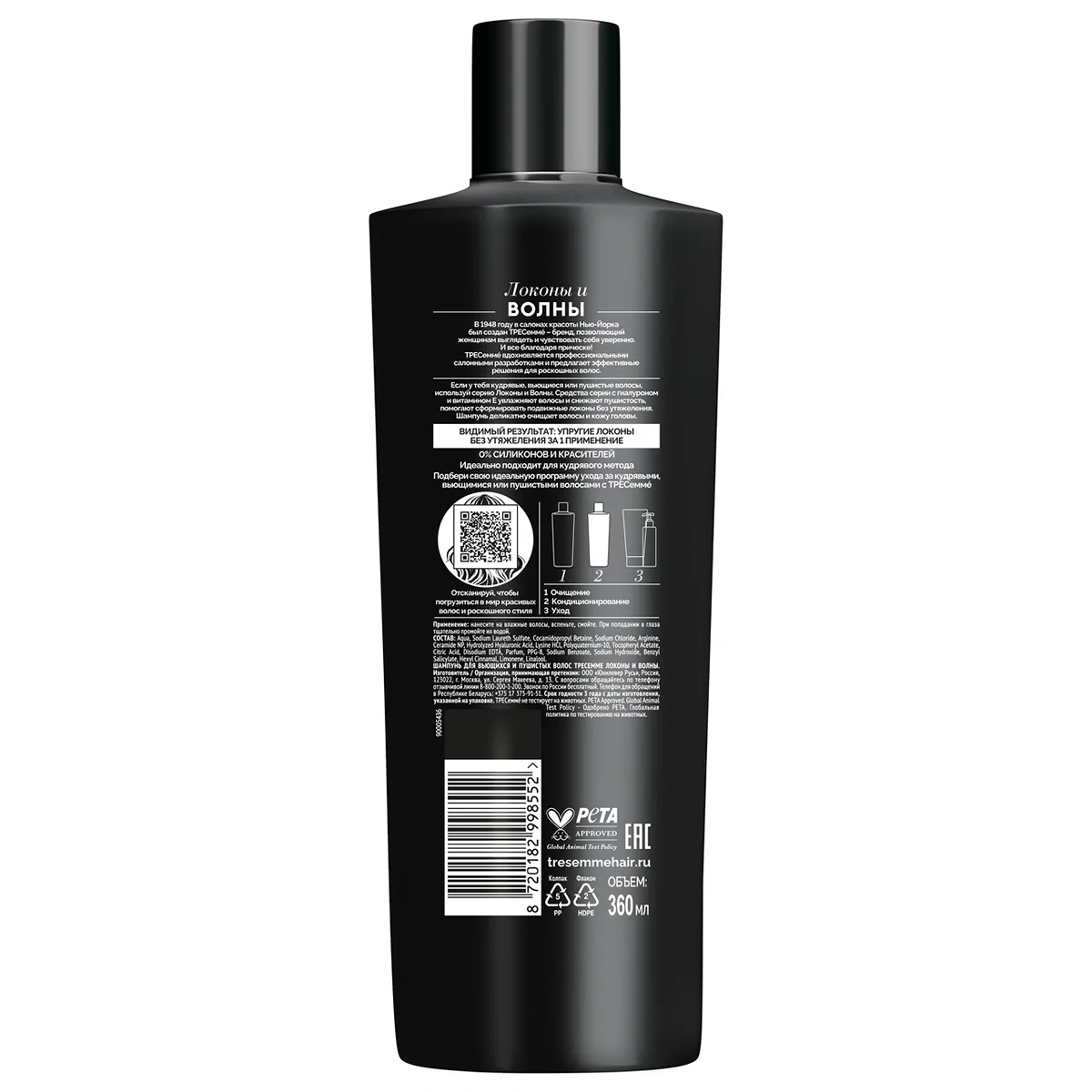 Качественно и бережно очищает волосы и кожу головы от загрязнений. - Формула с гиалуроном и витамином Е увлажняет волосы и снижает пушистость. Помогает сформировать подвижные локоны без утяжеления. Не содержит силиконов, парабенов и красителей. Используй всего три шага на пути к ухоженным и красивым волосам. Дополнить шампунь Тресемме можно кондиционером после каждого мытья и маской 1-2 раза в неделю. Для укладки используется легкий крем серии, который позволит создать модный образ и идеально подготовит для него волосы.