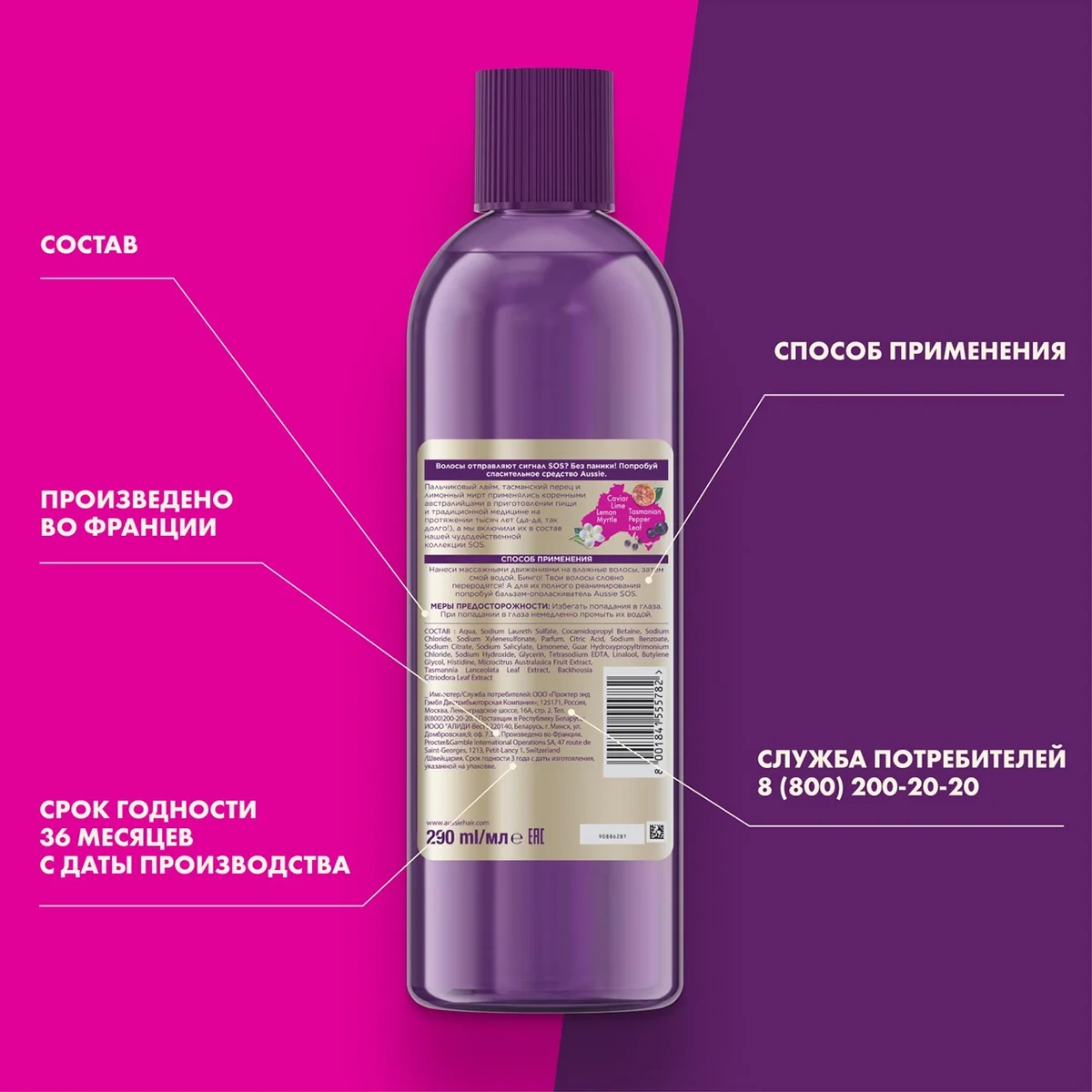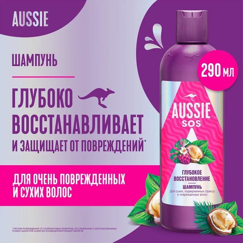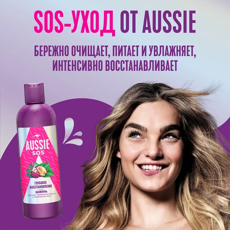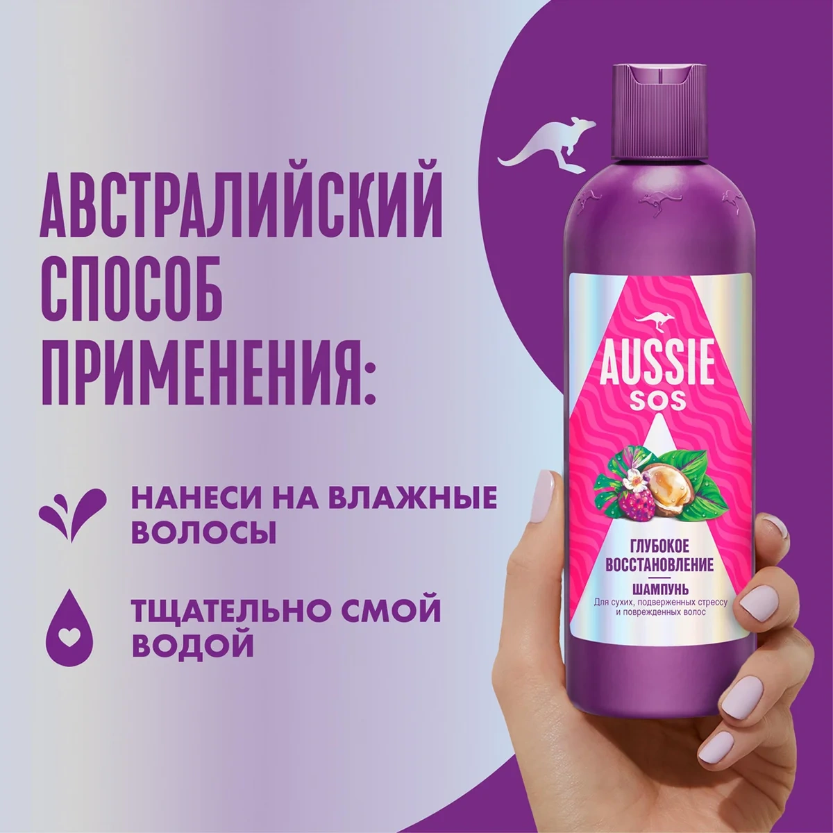 Сухие и поврежденные волосы посылают сигнал SOS? Без паники, Aussie бросает спасательный круг! Шампунь Aussie SOS Глубокое Восстановление бережно очищает кожу головы, восстанавливает подверженные стрессу волосы и защищает их от дальнейших повреждений*. SOS-уход сделает волосы мягкими, гладкими и превосходно увлажненными. Средства Aussie насыщены австралийскими ингредиентами - белая клубника и масло Макадамии: они растут на самом сухом континенте и имеют восхитительный аромат. Для получения WOW эффекта используй шампунь в комплексе с другими средствами линейки Aussie SOS Глубокое Восстановление, в которую входят бальзам-ополаскиватель, маска для волос и термозащита. *От повреждений при укладке по сравнению с использованием шампуня Aussie без кондиционирующих свойств.
