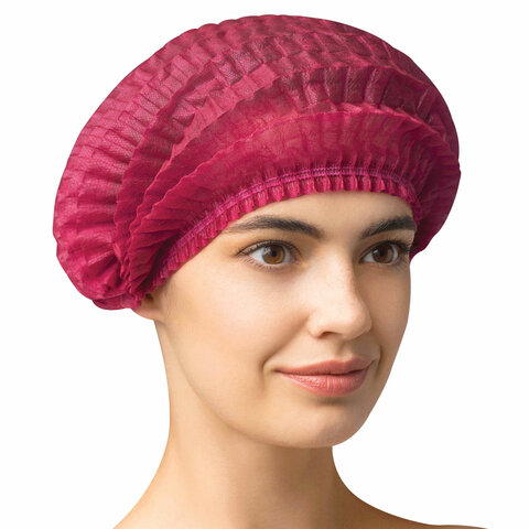 Шапочка одноразовая 'Шарлотта' ЧИСТОВЬЕ КОМПЛЕКТ 50 шт., спанбонд 15 г/м2, бордовая, 600-874