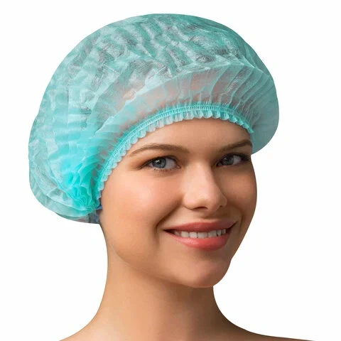 Шапочка одноразовая Гекса Плиссе бирюзовая, материал спандбонд, 18 г/м2, 25шт/уп