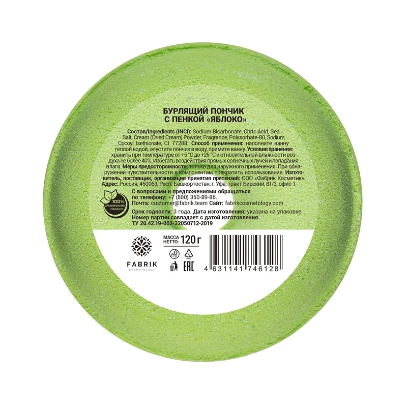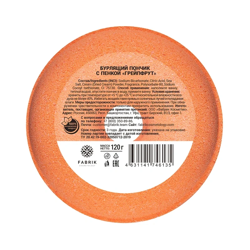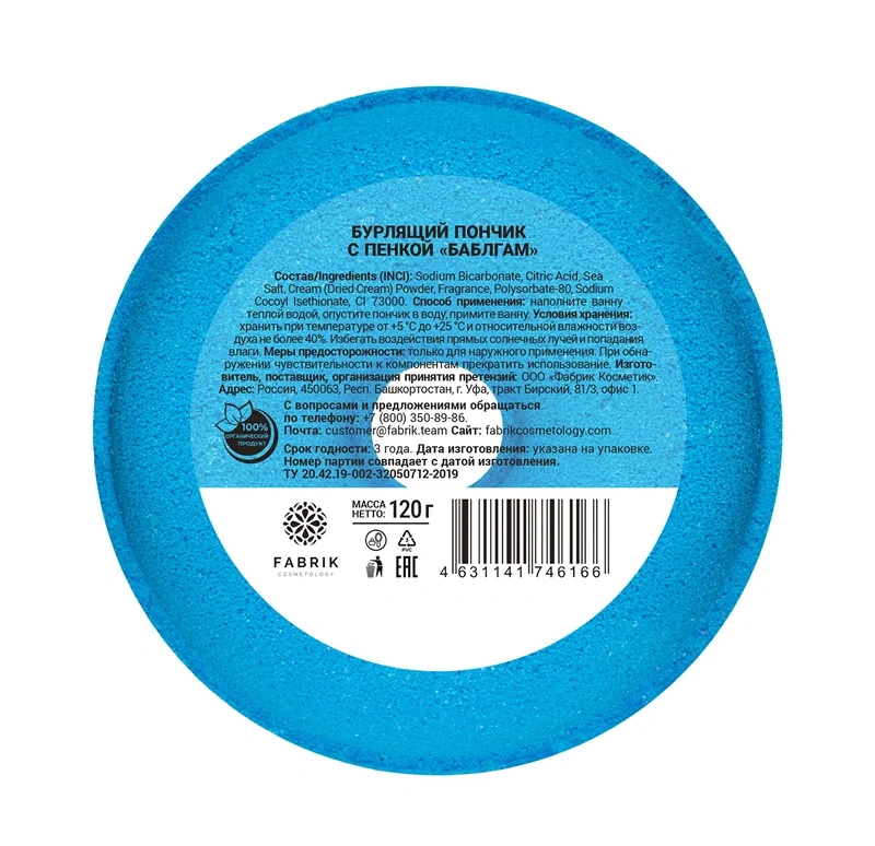 Шар для ванны Fabrik Cosmetology Бурлящий пончик в ассортименте, 120г