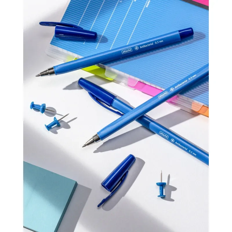 Шариковая ручка Attache Antibacterial синяя, 0.5мм, голубой корпус