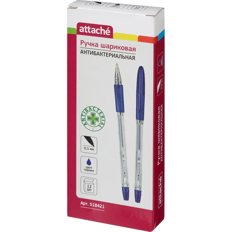 Шариковая ручка Attache Antibacterial синяя, 0.5мм, с манжеткой