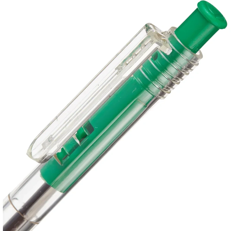 Ручка имеет пластиковый матово-прозрачный корпус, который на 80% выполнен из переработанного пластика, снабжена автоматическим механизмом. Стержень со стандартным наконечником заправлен чернилами на масляной основе повышенного качества зеленого цвета. Паста не замерзает при минусовых температурах. Цвет колпачка соответствует цвету чернил. Диаметр пишущего узла 0,7 мм создает тонкую линию письма, равную 0,5 мм. Сменный стрежень имеет длину 132 мм и обеспечивает длину непрерывной линии около 3000 м.