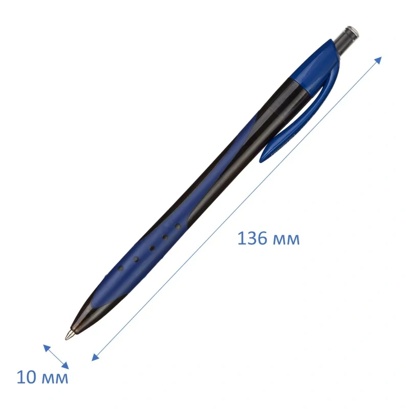 Диаметр пишущего узла 0,7 мм создает тонкую линию письма, равную 0,6 мм. Сине-черный цвет корпуса соответствует классическому офисному стилю.