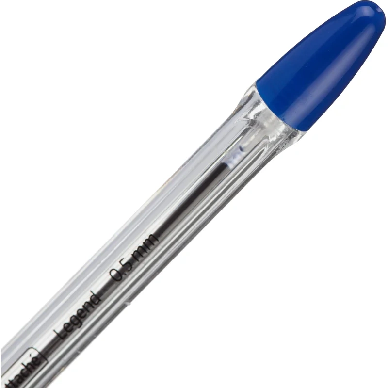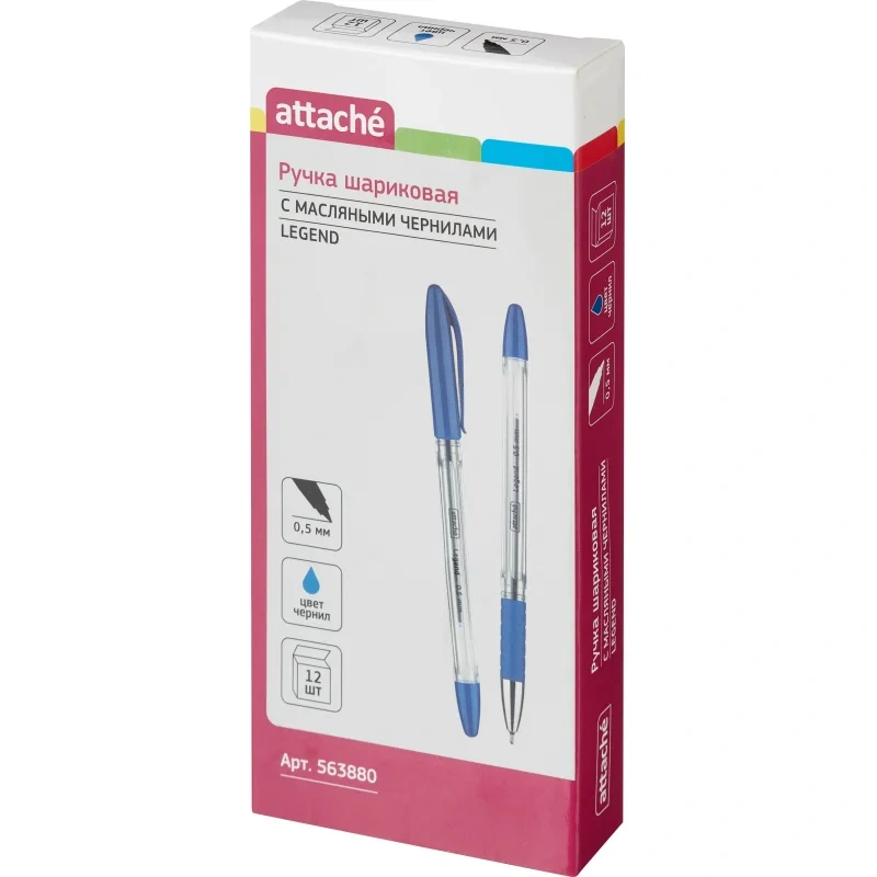Модель корпуса изготовлена из прозрачного пластика, имеет фигурную форму. Сменный стержень длиной 135 мм снабжен игольчатым наконечником, заправлен высококачественными чернилами на масляной основе синего цвета. Удобная прорезиненная зона захвата предотвратит скольжение пальцев при письме. Диаметр пишущего узла 0,7 мм создает тонкую линию письма, равную 0,5 мм. Прозрачный цвет корпуса позволяет следить за расходом чернил. Ручка Attache Legend — это отличный вариант для ежедневного использования в офисе или дома.