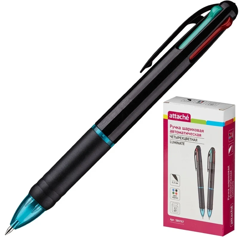 Многостержневая шариковая ручка Attache Luminate с изящным тонким корпусом, не характерным для многостержневых ручек, совмещает в одном корпусе четыре классических цвета.