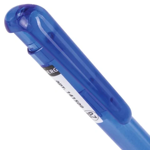 Имеет круглый корпус из тонированного пластика насыщенного синего цвета. Сменный стержень длиной 107 мм со стандартным наконечником позволит использовать ручку максимально долго. Диаметр пишущего узла, равный 0,7 мм, создает тонкую линию письма, равную 0,35 мм. Цвет чернил - синий.