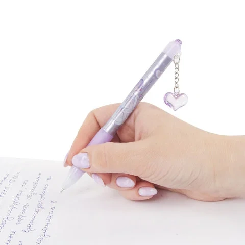 Ручка с цветной печатью на корпусе и подвеской, а тажке резиновым грипом для удобства письма, исключающим скольжение пальцев. Сменный стержень длиной 107 мм. Диаметр пишущего узла 0,5 мм создает ровную линию письма, равную 0,3 мм. Цвет чернил - синий. Необычный дизайн корпуса ручки привлекут внимание как школьников, так и взрослых.
