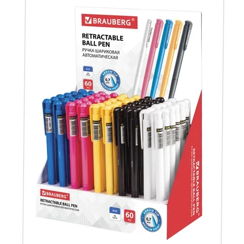 Шариковая ручка автоматическая Brauberg Hot Hit синяя, 0.35мм, ассорти корпус