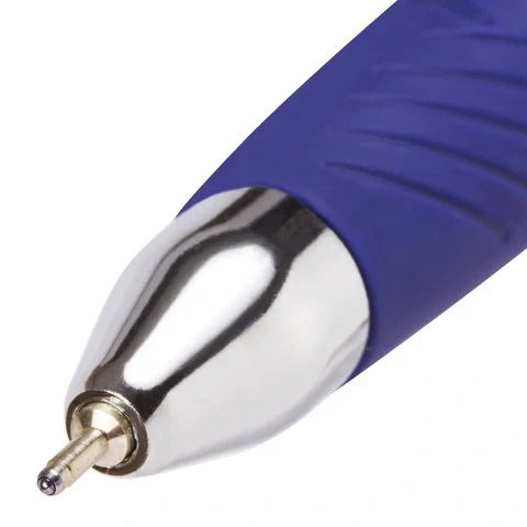 Имеет круглый корпус синего цвета с печатью и резиновым грипом в зоне захвата для удобства письма. Сменный стержень длиной 107 мм с игольчатым наконечником позволит использовать ручку максимально долго. Диаметр пишущего узла, равный 0,7 мм, создает тонкую линию письма, равную 0,35 мм. Специальные масляные чернила синего цвета ультрапониженной вязкости и надежный пишущий узел обеспечивают непревзойденно мягкое и комфортное письмо.