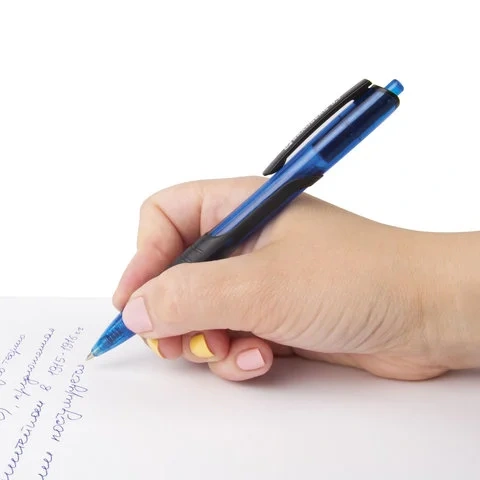 Имеет круглый корпус синего цвета с прорезиненными вставками и резиновым грипом в зоне захвата для удобства письма. Сменный стержень длиной 111 мм с евронаконечником позволит использовать ручку максимально долго. Диаметр пишущего узла, равный 0,7 мм, создает тонкую линию письма, равную 0,35 мм. Специальные масляные чернила ультрапониженной вязкости FEEL INK и надежный пишущий узел обеспечивают непревзойденно мягкое и комфортное письмо