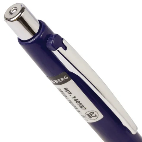 Шариковая ручка со специальной рифленой вставкой в области захвата. Сменный стержень с синими чернилами длиной 107 мм. Диаметр пишущего узла 0,7 мм создает тонкую линию письма 0,35 мм. Поставляется в нескольких вариантах цвета корпуса и соответствует офисному стилю.