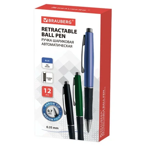 Шариковая ручка автоматическая Brauberg Style синяя, 0.7мм, ассорти корпус