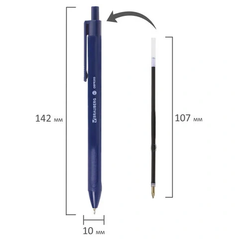 Шариковая ручка автоматическая Brauberg Trios синяя, 0.5мм, синий корпус