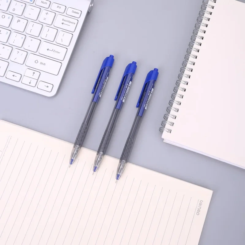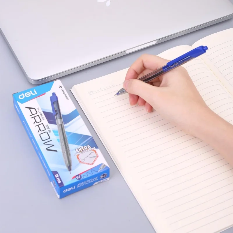 Ручка шариковая автоматическая Deli Arrow с удобной рифленой зоной захвата обеспечивает легкое, мягкое и комфортное письмо. Выбирая Deli Arrow Вы приобретаете ручку, которая ответит всем Вашим требованиям. Ручка с игольчатым типом пишущего узла. Ручка без манжета шариковая имеет прозрачный пластиковый круглый корпус, что позволяет контролировать уровень расхода чернил. Диаметр пишущего узла ручки составляет 0.7 мм, толщина линии 0.35 мм. Четкие линии чернил не размазываются при нечаянном соприкосновении рукой. В производстве ручек используются чернила пониженной вязкости, гарантирующие необыкновенно мягкое и четкое письмо на любой бумаге. Шариковая черная ручка пишет очень тонко и аккуратно (игольчатый наконечник). Удобный клип на корпусе позволяет фиксировать ручку на ежедневниках, блокнотах и карманах одежды. Ручка идет с боковым отжимом для выключения. Удобно лежит в руке и не вызывает дискомфорта даже при длительном использовании. Классическая шариковая ручка будет уместна на любом учебном или офисном столе. Цвет чернил: синий.