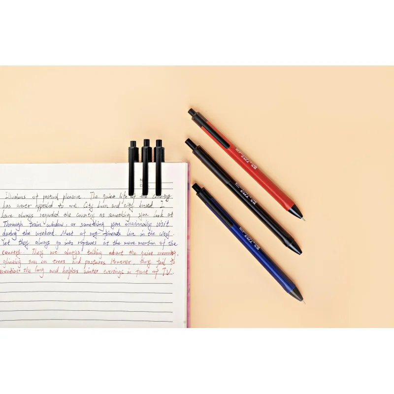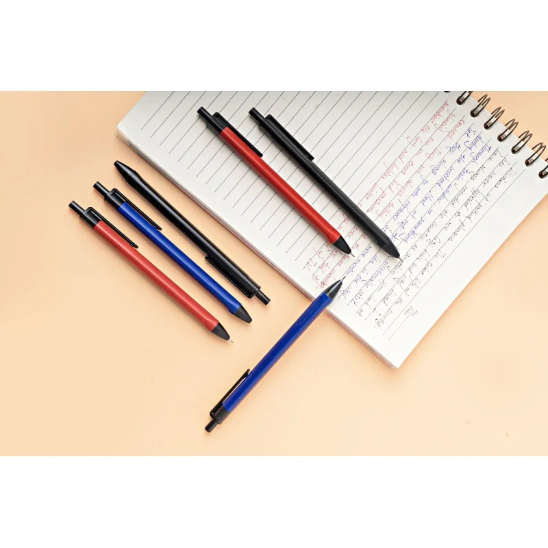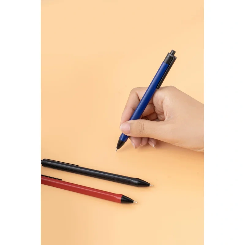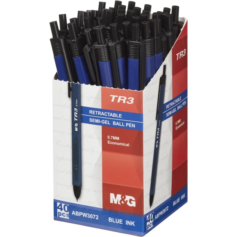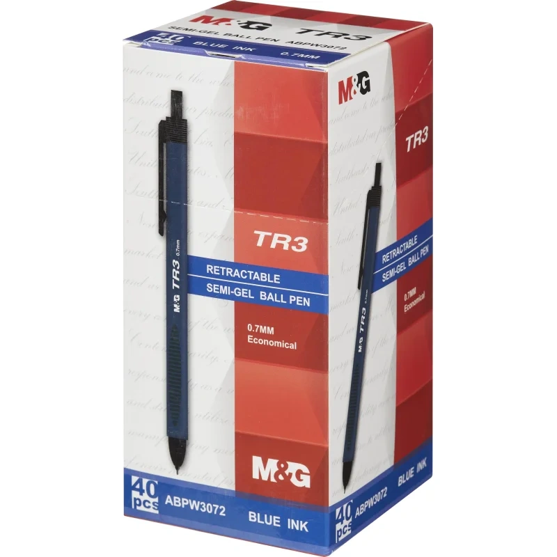 Автоматическая шариковая ручка M&G в традиционном пластиковом корпусе. Модель имеет автоматический механизм, эргономичный трехгранный корпус. Стержень снабжен игольчатым наконечником и заправлен масляными чернилами синего цвета. Диаметр пишущего узла 0,7 мм создает тонкую линию письма, равную 0,5 мм. Существует возможность замены стержня длиной 97,8 мм.
